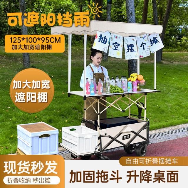 不空军渔具店 折疊推車 擺攤推車 露營車 移動防雨遮陽擺地攤升降露營小推車戶外可摺疊野餐營地手拖拉便攜