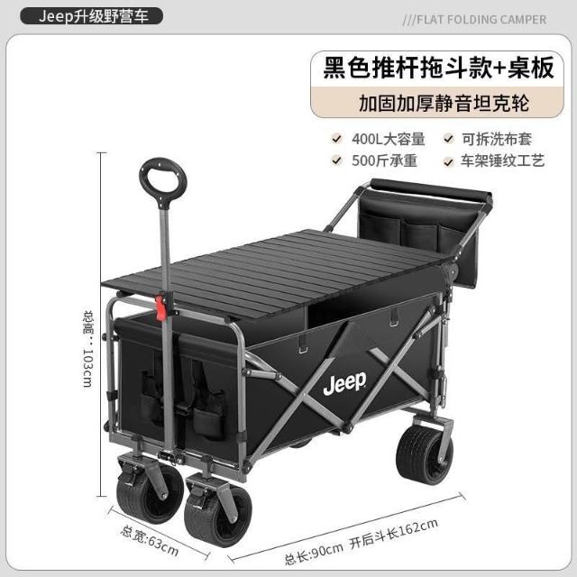 不空军渔具店 折疊推車 擺攤推車 露營車 【官方正品】JEEP/吉普露營推車推拉一體戶外野營手推車擺攤摺疊拉快遞便攜車