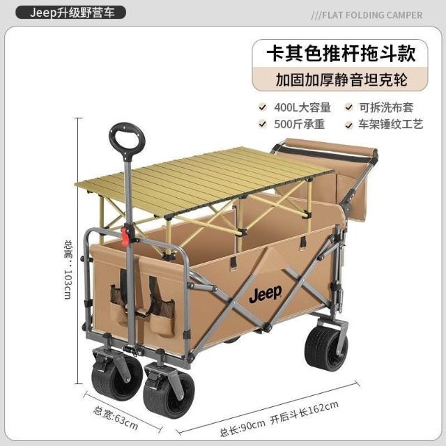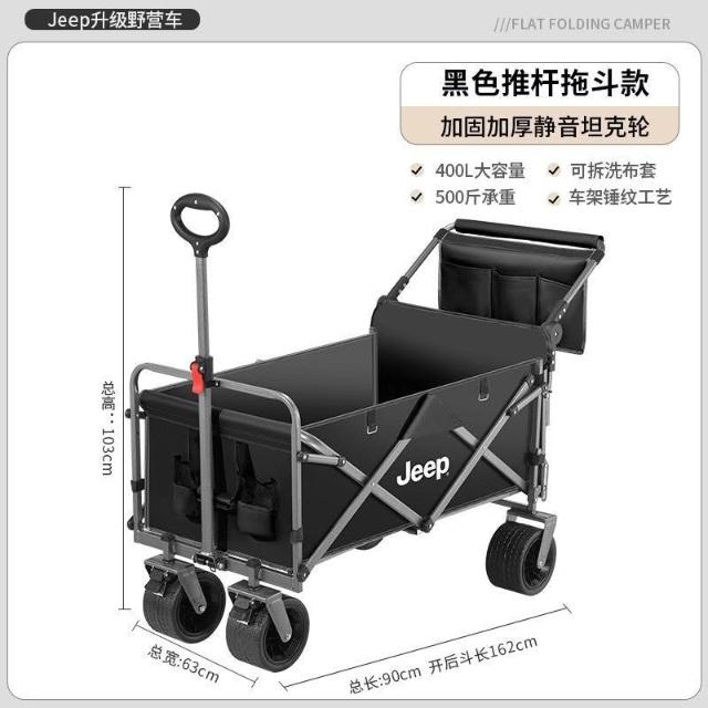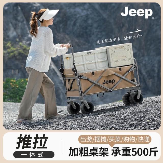 不空军渔具店 折疊推車 擺攤推車 露營車 【官方正品】JEEP/吉普露營推車推拉一體戶外野營手推車擺攤摺疊拉快遞便攜車
