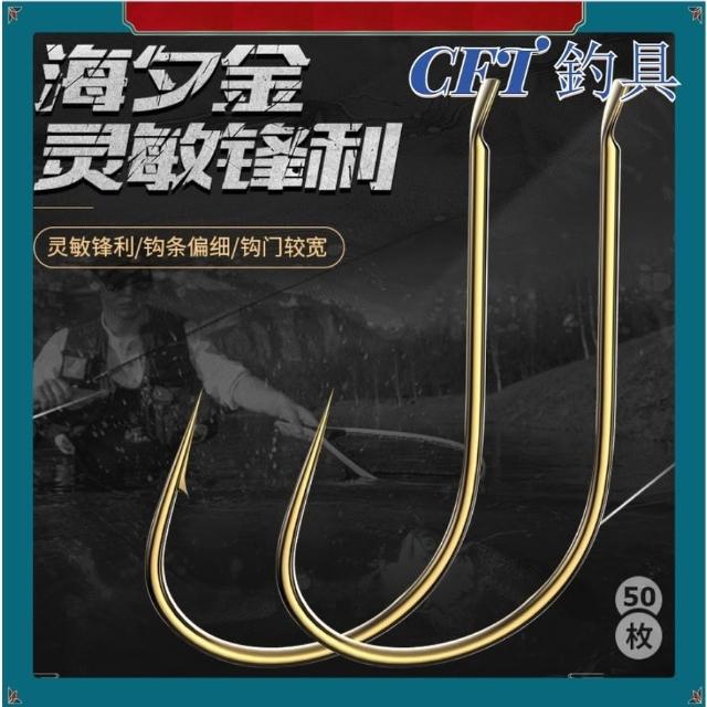 不空军渔具店 50枚裝新款海夕魚鉤散裝進口黑坑鯽魚筏釣鉤日本金海夕鯉魚鉤正品漁具