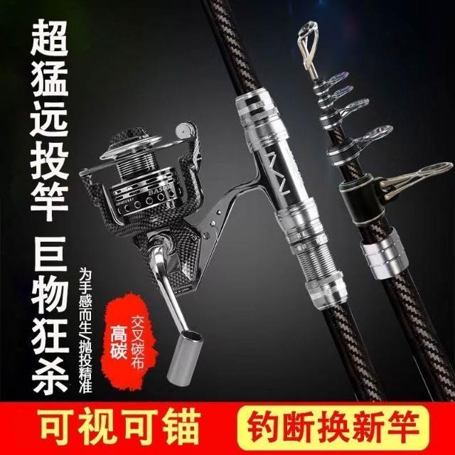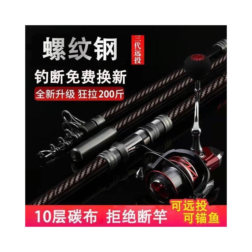 不空军渔具店 螺紋鋼遠投竿海竿碳素超輕硬4.2米4.5米魚竿海釣甩桿海桿拋竿套裝