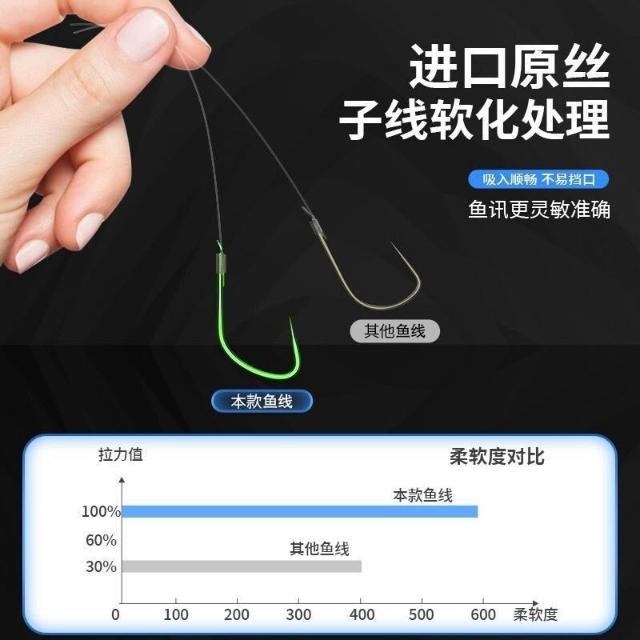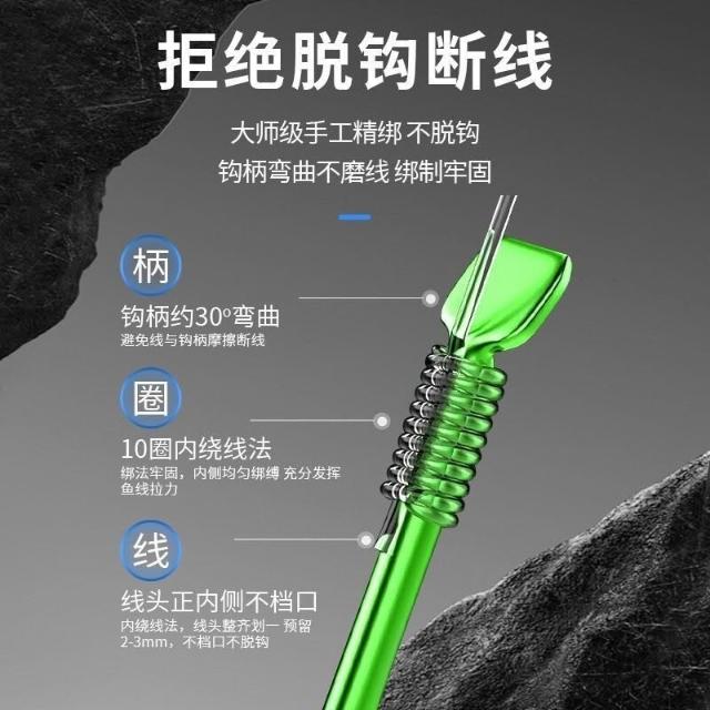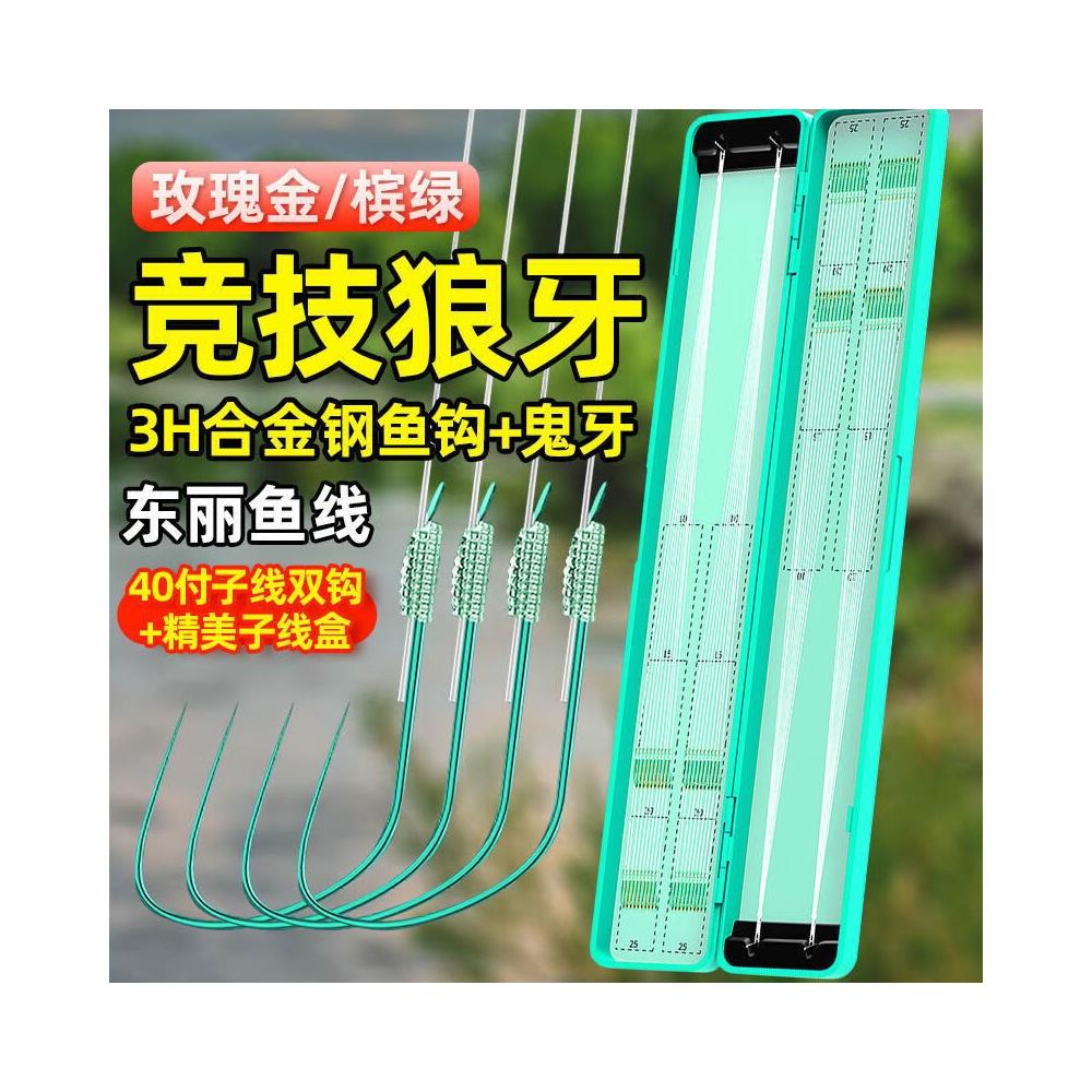 不空军渔具店 超硬狼牙魚鉤 40付盒競技狼牙手工精綁鉤黑坑專用子線雙鉤偷驢套裝
