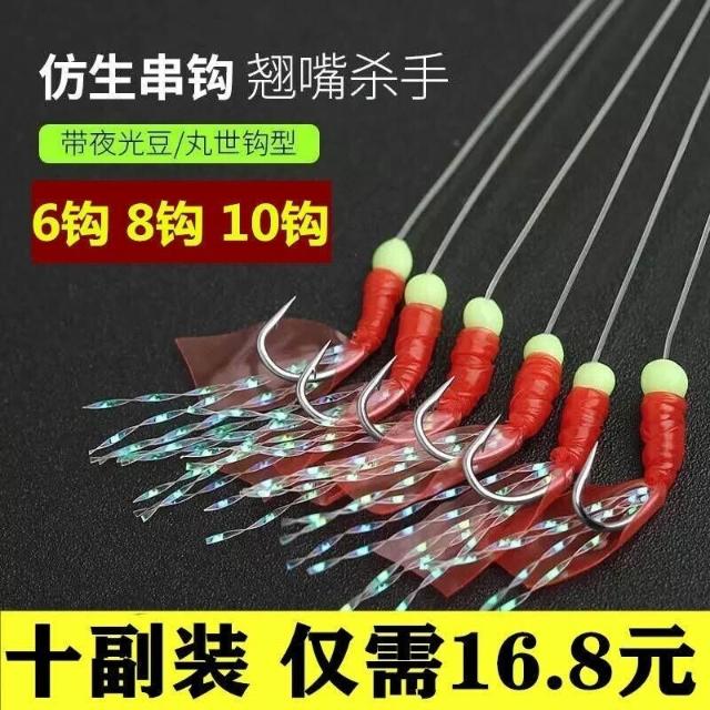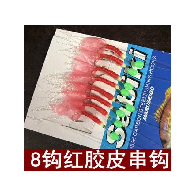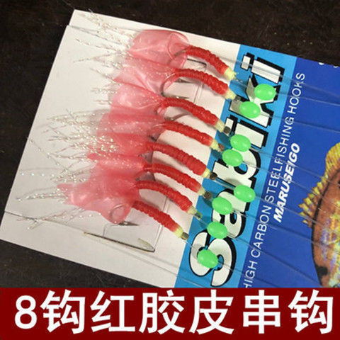 不空军渔具店 夜光蝦仿生魚皮紅膠皮串鉤路亞餌 翹嘴白條飛繩仿生串鉤魚鉤包郵
