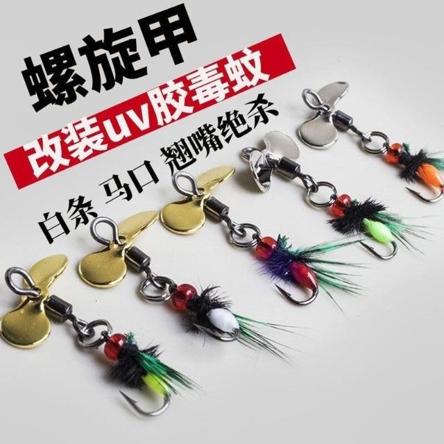 不空军渔具店 微物路亞假餌 旋轉螺旋槳飛蠅 毒蚊亮片不傷線套裝迷你白條馬口新款