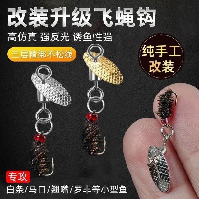 不空军渔具店 微物路亞餌 綁好改裝旋轉飛蠅鉤不傷線瓜子亮片套裝馬口羅非白條