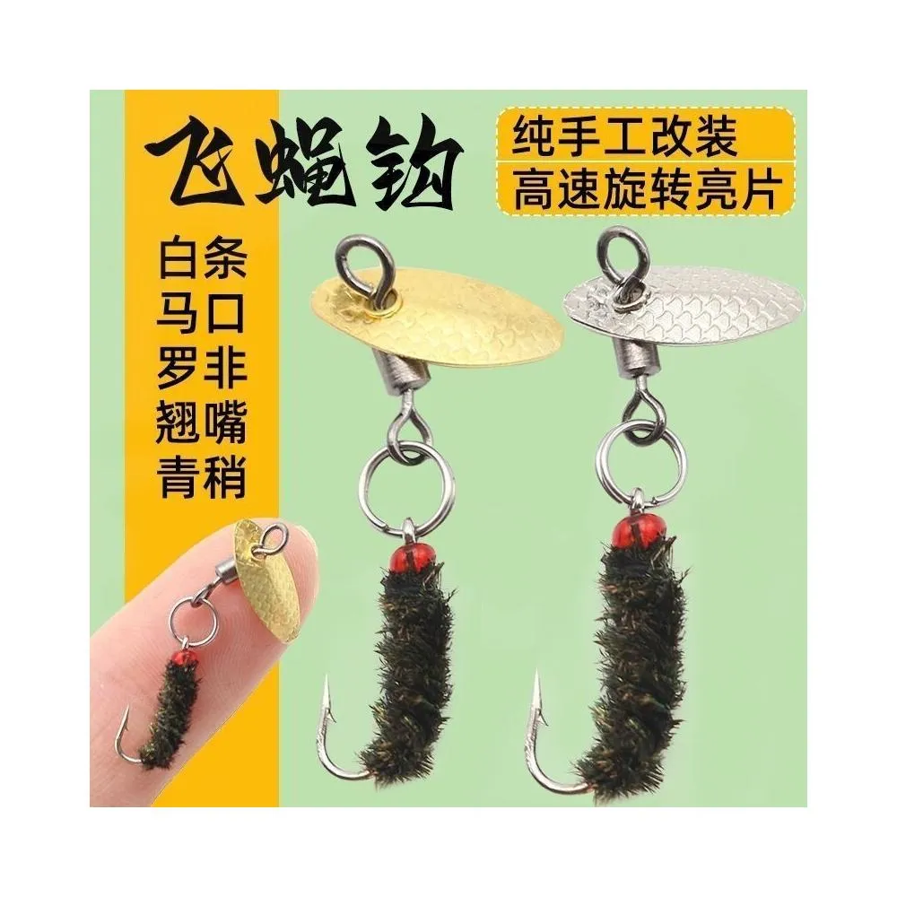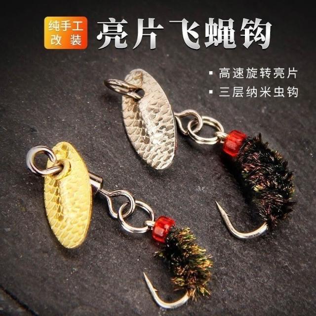 不空军渔具店 微物路亞餌 綁好改裝旋轉飛蠅鉤不傷線瓜子亮片套裝馬口羅非白條