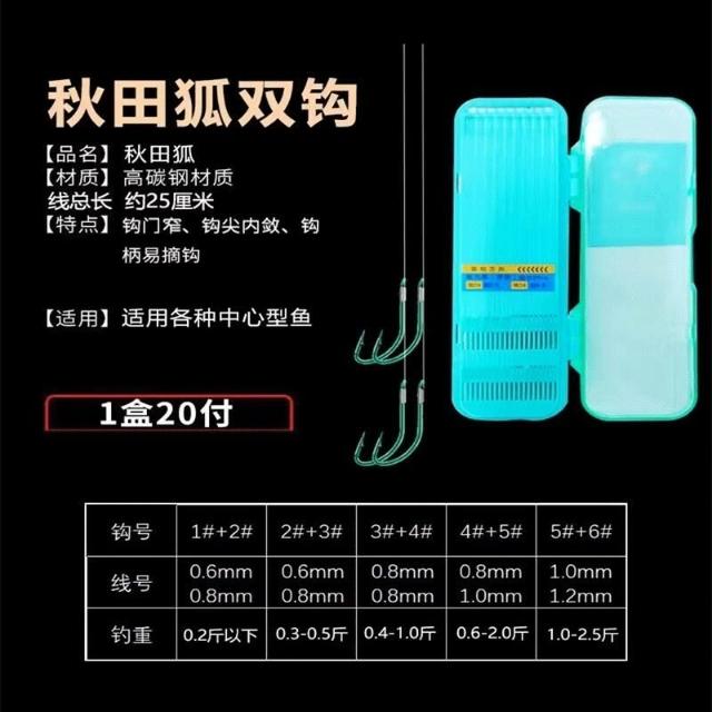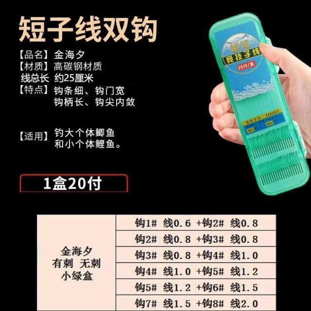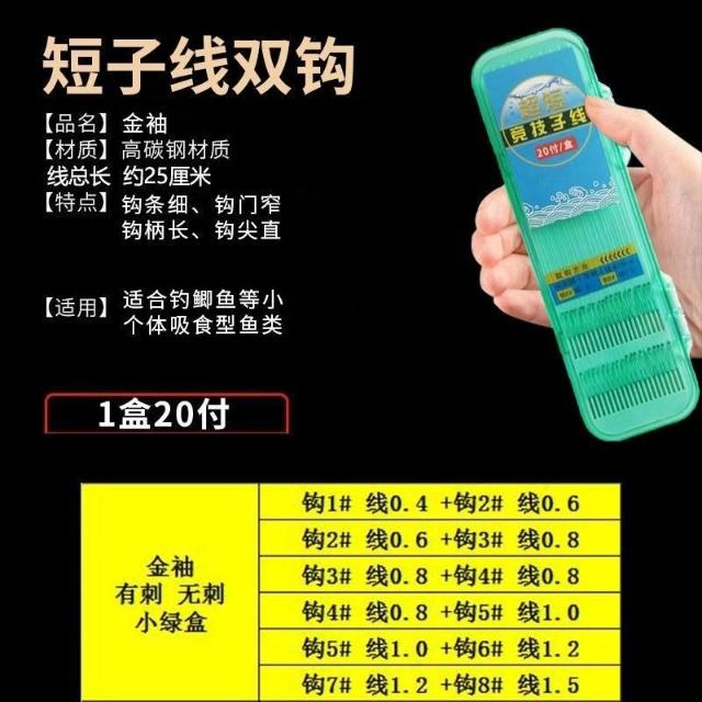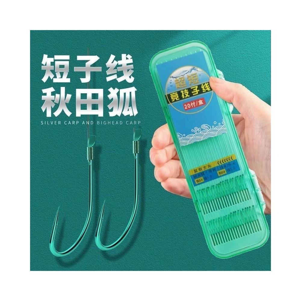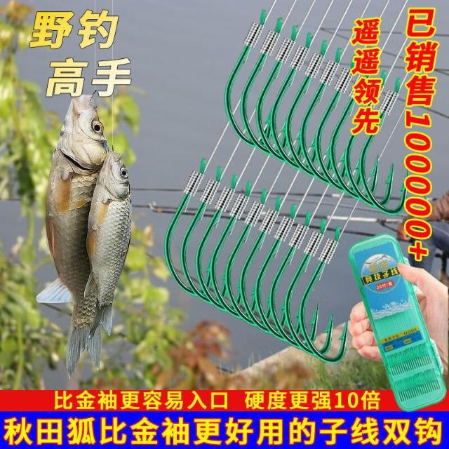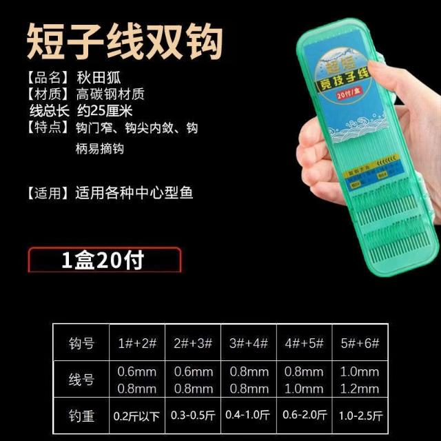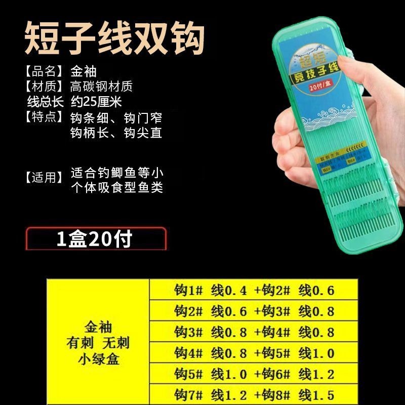 不空军渔具店 進口金袖秋田狐成品子線雙鉤綁好短款魚鉤 子線全套野釣 鯽魚小白條