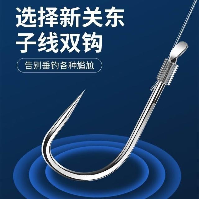 不空军渔具店 新關東魚鉤 綁好子線雙鉤成品無刺黑坑鯉魚浮釣 成品鰱鱅專用鉤套裝