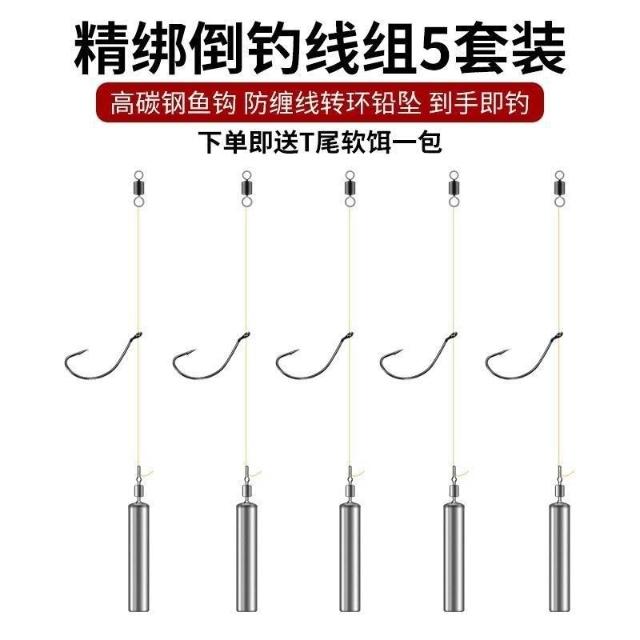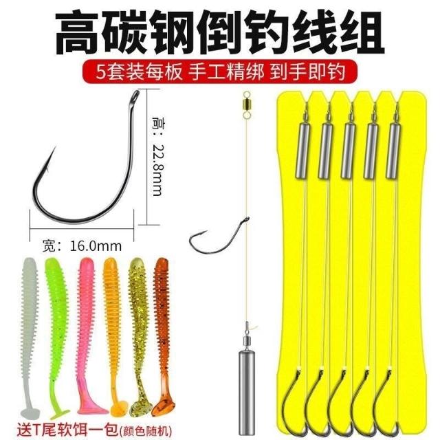 不空军渔具店 倒釣釣組路亞倒釣鉤 線組綁好套裝曲柄鉤德州釣組防掛底魚鉤軟餌