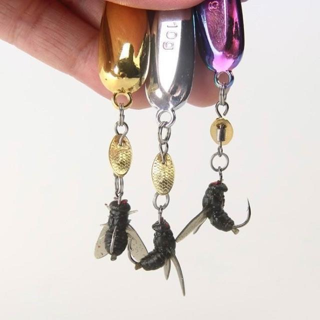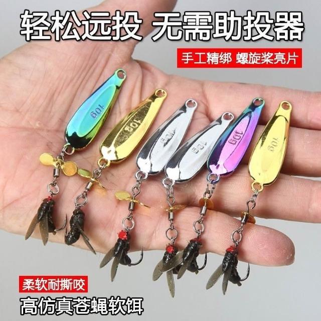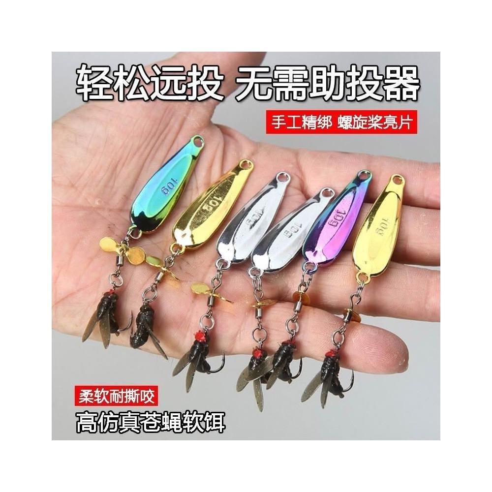 不空军渔具店 高仿真柔軟蒼蠅餌路亞軟餌新款改裝飛蠅鉤亮片白條馬口微物路亞餌