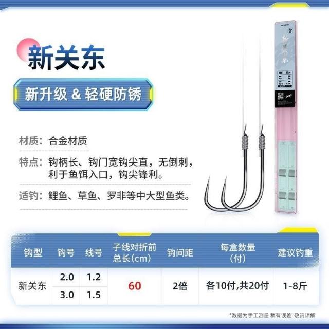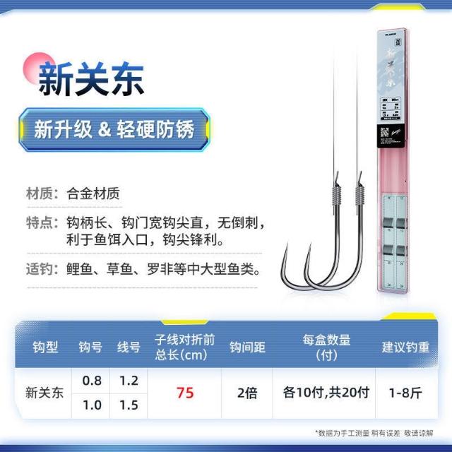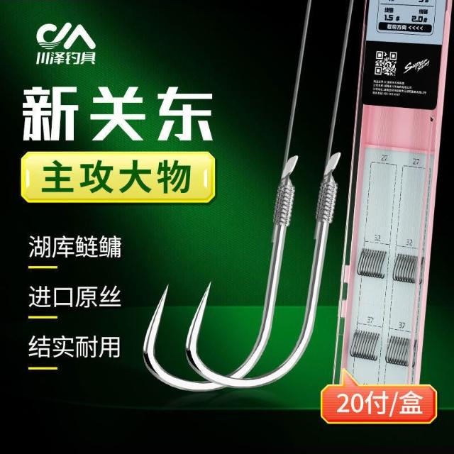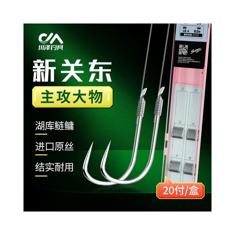 不空军渔具店 川澤新關東魚鉤 成品子線雙鉤無刺套裝專攻黑坑湖庫鰱鱅青魚大物