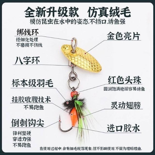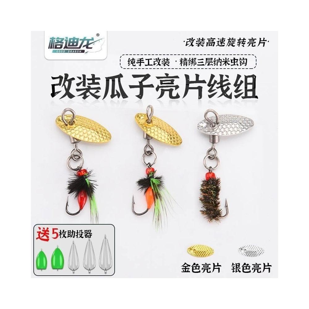 不空军渔具店 路亞微物旋轉瓜子亮片綁好不傷線馬口白條魚小飛旋假餌 飛蠅 鉤 套裝