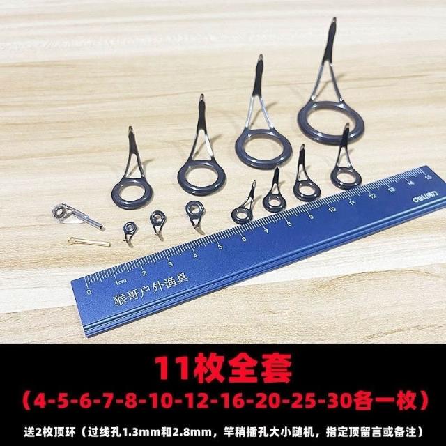 不空军渔具店 路亞竿導環 多號筏竿陶瓷導線環 魚竿爆改導環黑色導綫環單腳陶瓷導環黑色路亞環套裝全套