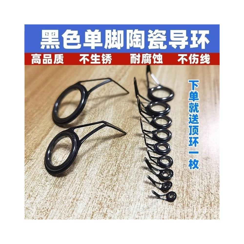 不空军渔具店 路亞竿導環 多號筏竿陶瓷導線環 魚竿爆改導環黑色導綫環單腳陶瓷導環黑色路亞環套裝全套