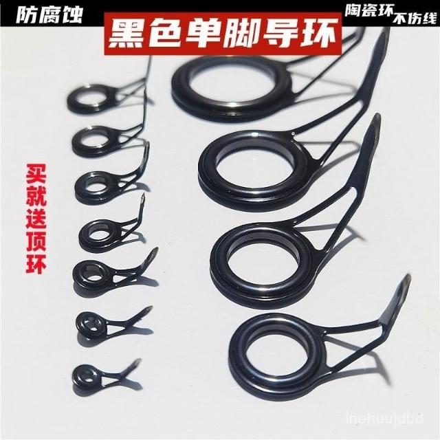 不空军渔具店 路亞竿導環 多號筏竿陶瓷導線環 魚竿爆改導環黑色導綫環單腳陶瓷導環黑色路亞環套裝全套