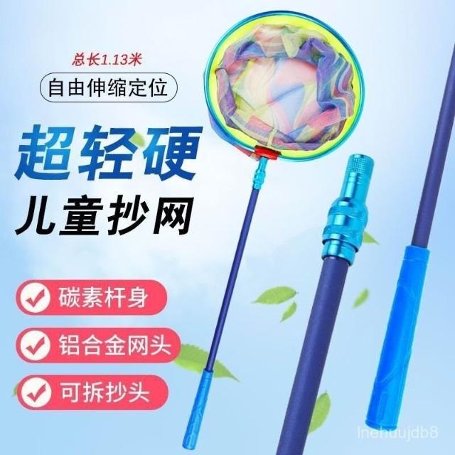 不空军渔具店 釣魚玉柄 撈柄 撈網 玉之柄 釣魚撈網 兒童抄網輕伸縮撈魚網抄網桿小孩撈魚小魚小蝦加厚釣魚全套網兜