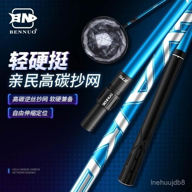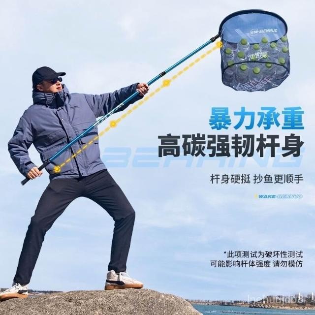 不空军渔具店 釣魚抄網竿 碳素抄網竿撈柄 撈網 玉柄碳素抄網便攜式可折疊加深網兜輕高碳撈魚網抄網桿伸縮桿抄網
