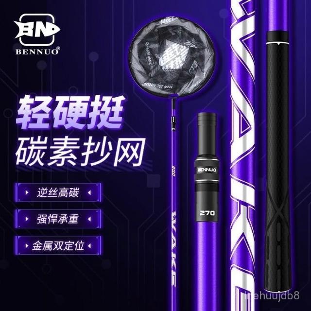 不空军渔具店 釣魚抄網竿 碳素抄網竿撈柄 撈網 玉柄碳素抄網便攜式可折疊加深網兜輕高碳撈魚網抄網桿伸縮桿抄網