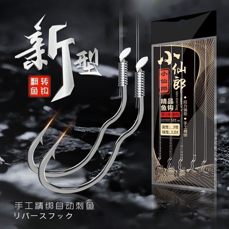 不空军渔具店 咬口就中 自動翻轉魚鉤 新手防跑魚小僊郎綁好正品子綫成品雙鈎新型自動翻轉魚鈎反轉不脫李火明奇鈎 強貫穿力