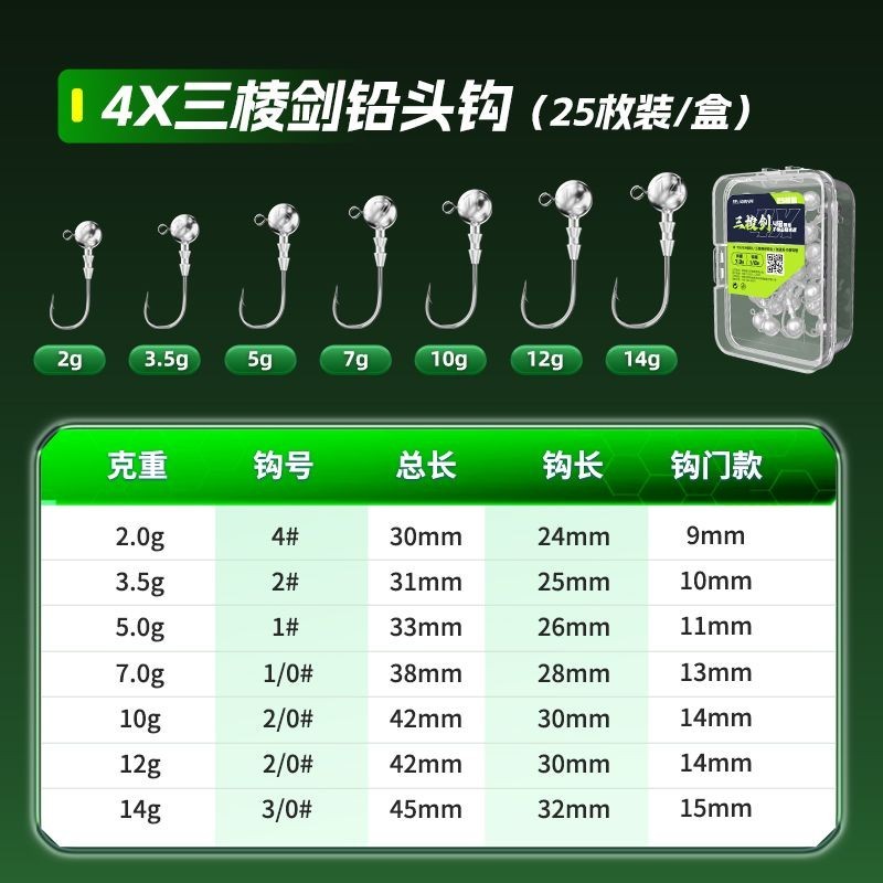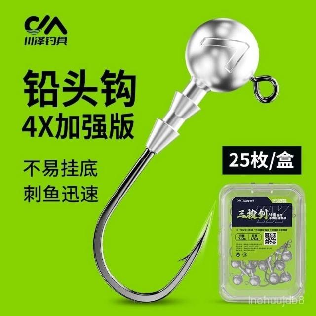 不空军渔具店 汲頭鉤 路亞魚鉤 軟蟲鉤 鉛頭鈎 軟蟲鉤 川澤鉛頭鈎路亞加強陞級版毒牙4三稜劍防掛底鱖魚鱸魚微物小5克