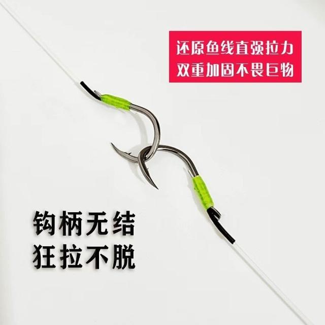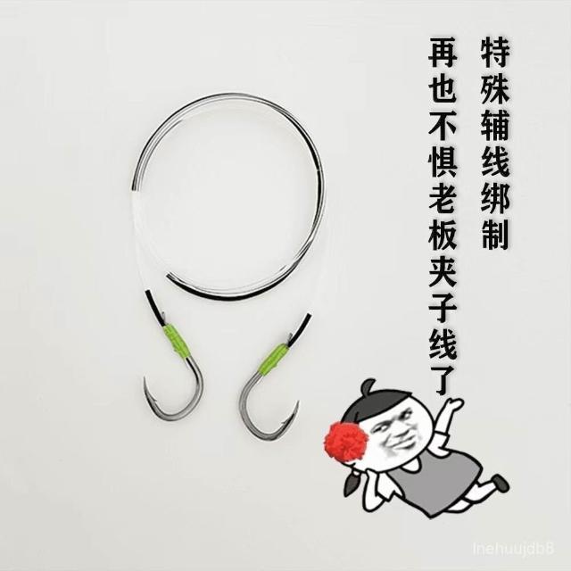 不空军渔具店 強拉力訂製魚鉤 成品子線雙鉤 野釣 競技 黑坑 無結大物子綫雙鈎青魚草魚伊勢尼魚鈎無鉛防珠珠玉米歪嘴成品