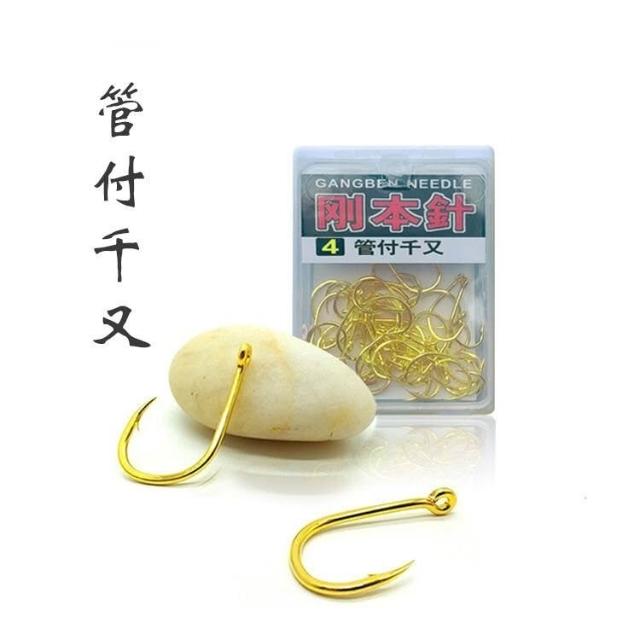 不空军渔具店 金色魚鈎 金韆又 剛本針 特級金韆又 剛本針金色管付韆又強力新款有倒刺歪嘴帶圈有孔大包裝垂釣釣魚鈎