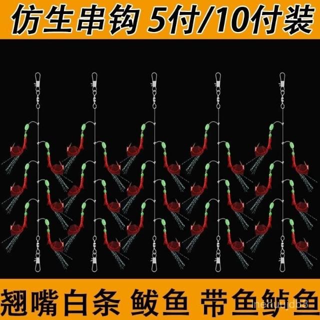 不空军渔具店 海釣串鈎 串鈎仕掛 魚皮鈎 仿生串鈎釣組飛蠅綫組魚鈎翹嘴紅皮路亞亮片魚皮白條鱸魚海竿海釣