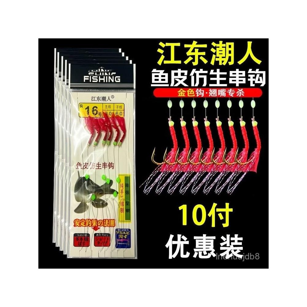 不空军渔具店 海釣串鈎 串鈎仕掛 魚皮鈎 仿生串鈎釣組飛蠅綫組魚鈎翹嘴紅皮路亞亮片魚皮白條鱸魚海竿海釣