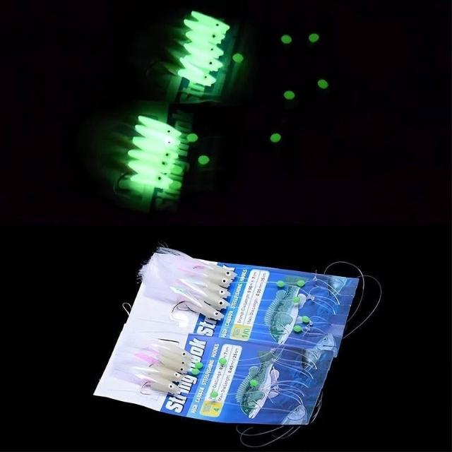 不空军渔具海用魚皮串鉤 船釣太刀魚 鮁魚夜光魚頭串鈎仿生魚餌路亞翹嘴鱸魚鮁魚蝦皮仕掛魚皮鉤 魚皮假餌 連鉤串鉤 船釣串鉤