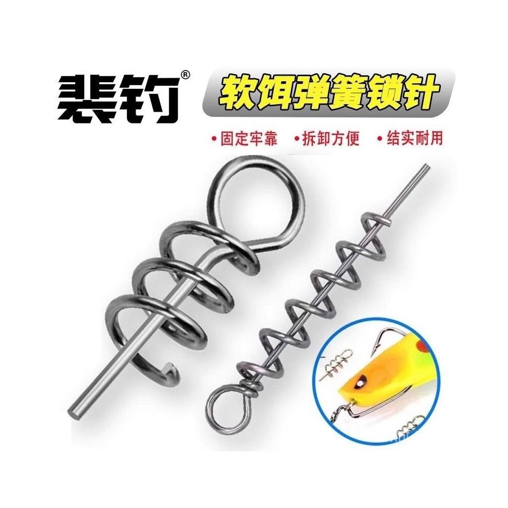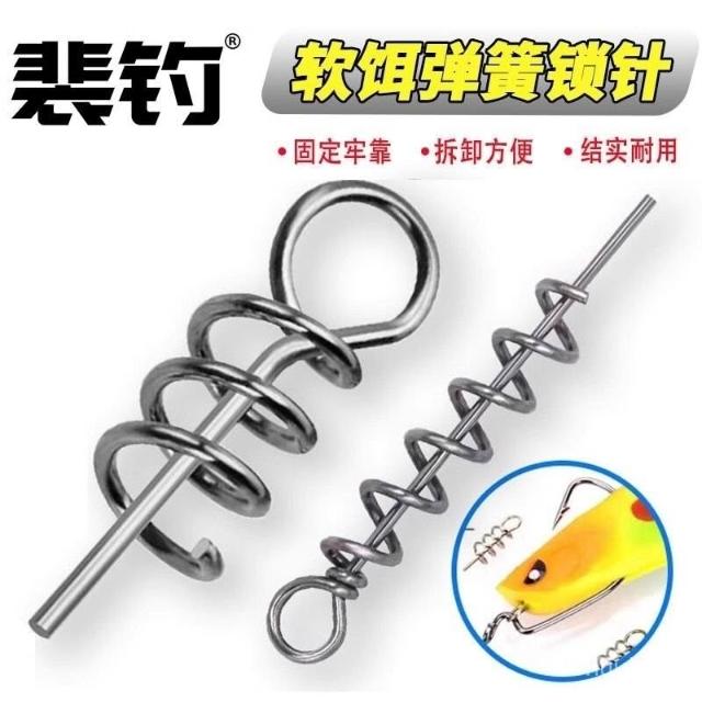 不空军渔具店裴釣路亞軟餌彈簧鎖針連接器假餌別針曲柄鈎防掛底海釣配件不銹鋼