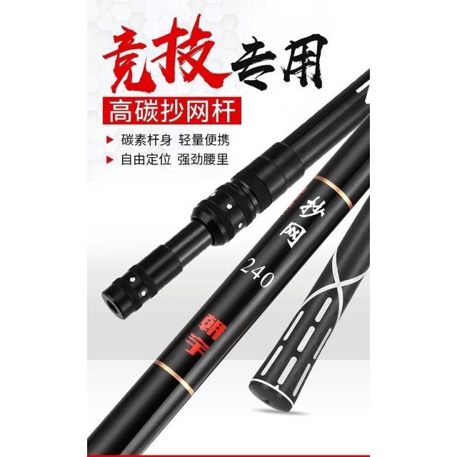 不空军渔具店 碳素抄網竿 池釣玉柄 好棒棒 撈柄 撈網 玉柄朝宇碳素抄網竿大物抄網桿輕硬黑坑釣魚伸縮折疊網兜撈魚網