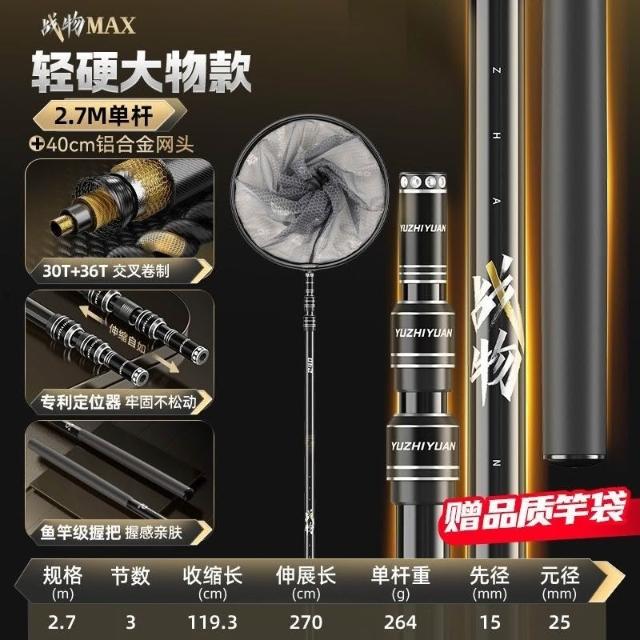 不空军渔具店 釣魚撈網 款碳素抄網竿全套組閤釣魚撈魚網抄伸縮桿大物抄網桿