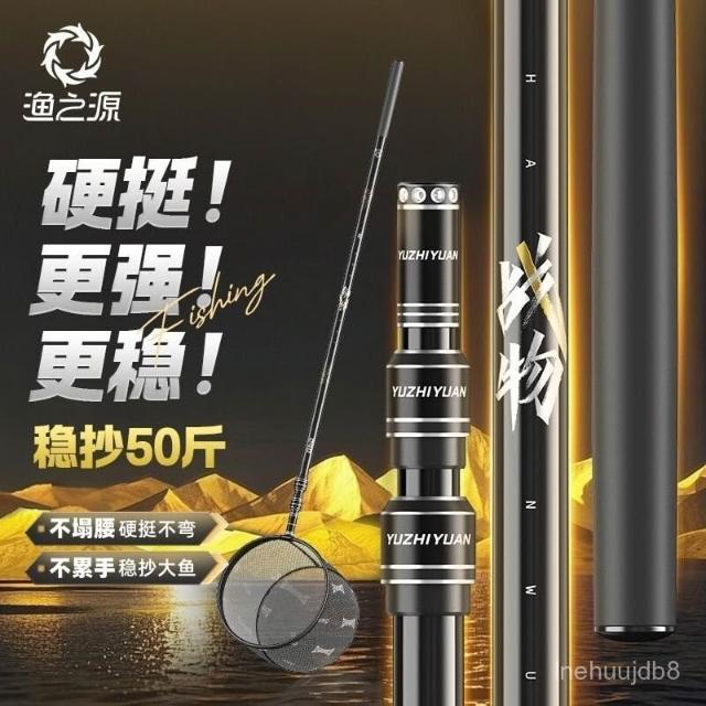 不空军渔具店 釣魚撈網 款碳素抄網竿全套組閤釣魚撈魚網抄伸縮桿大物抄網桿