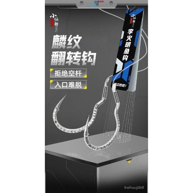 不空军渔具自動翻轉成品子線魚鉤 綁好翻轉魚鉤 自動翻轉魚鉤 新型麟紋陞級自動翻轉鈎綁好子綫有倒刺雙鈎易入口歪嘴防跑魚魚鈎