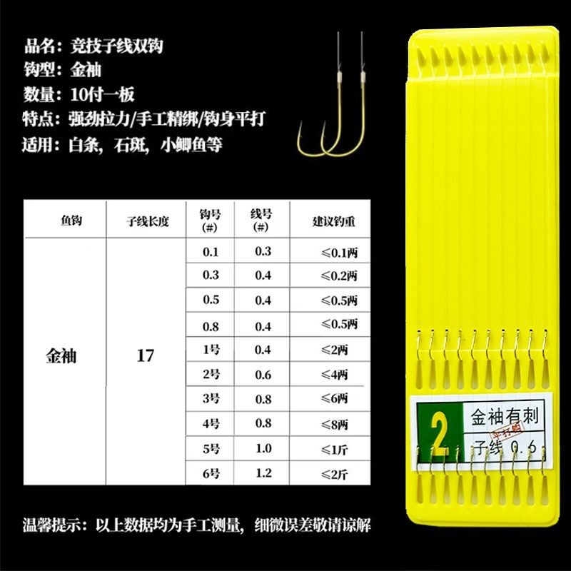 不空军渔具店 金袖子線魚鉤 最小釣魚金袖 鯽魚鉤 溪流綁好魚鉤 進口金袖短款魚鈎子綫雙鈎有刺無刺袖鈎綁好套裝