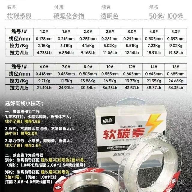 不空军渔具店 漁鼎碳素線路亞專用前導線軟碳線軟海釣全碳耐磨子線1.75號碳線 釣魚純碳線碳纖子線 釣魚子線 路亞線