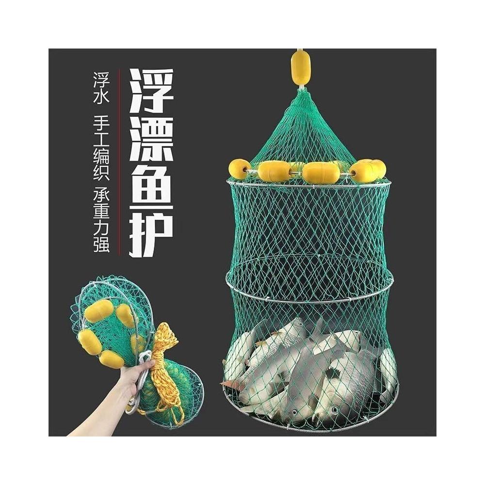 不空军渔具店 漁護浮水海釣釣魚臺護漁具兜折疊防跳魚簍帶漂球浮力釣魚網魚護網折疊魚護速幹活魚網護魚具/網具/魚網/蝦網