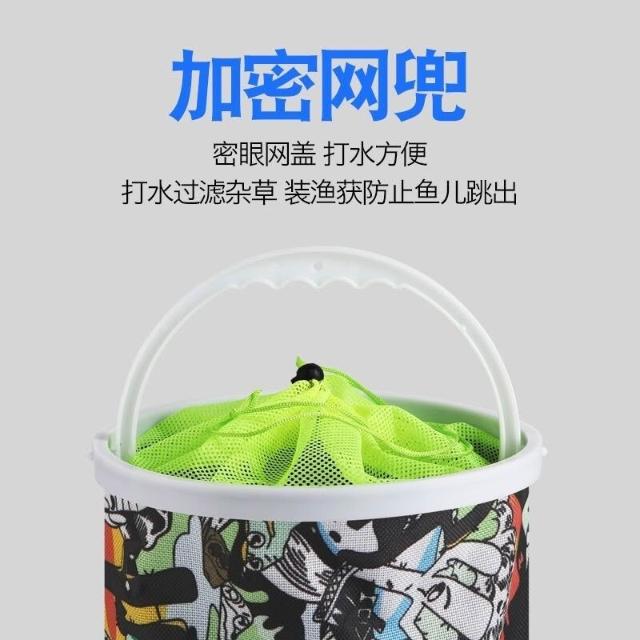 不空军渔具店 打水桶釣魚折疊打水桶裝魚桶洗車桶多功能便捷車載水桶活魚桶水桶釣魚網魚護網折疊魚護速幹活魚網護魚具魚網蝦網