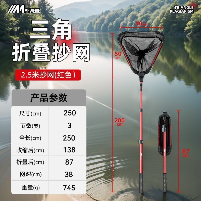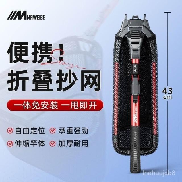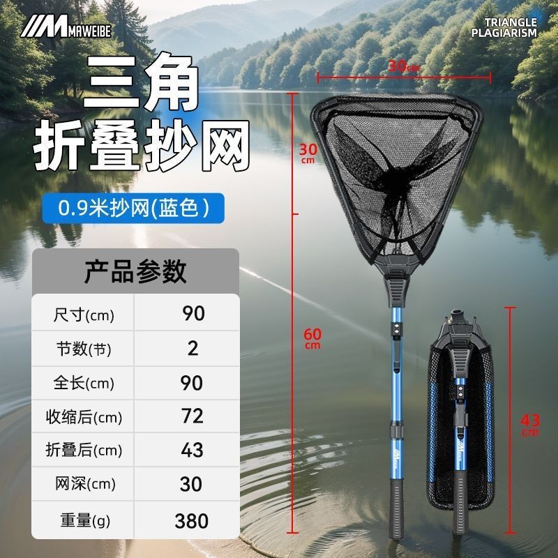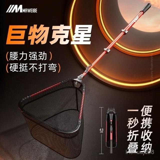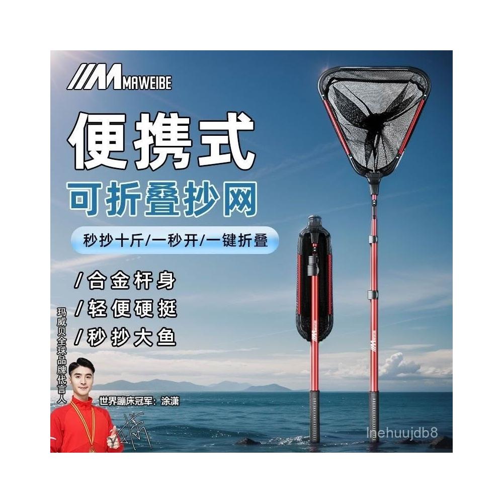 不空军渔具店 一體折疊漁網 撈魚網兜 釣魚抄網 釣魚網 蝦網瑪威貝一體三角抄網釣漁網兜多功能折疊便攜式抄網鋁閤金折疊抄網