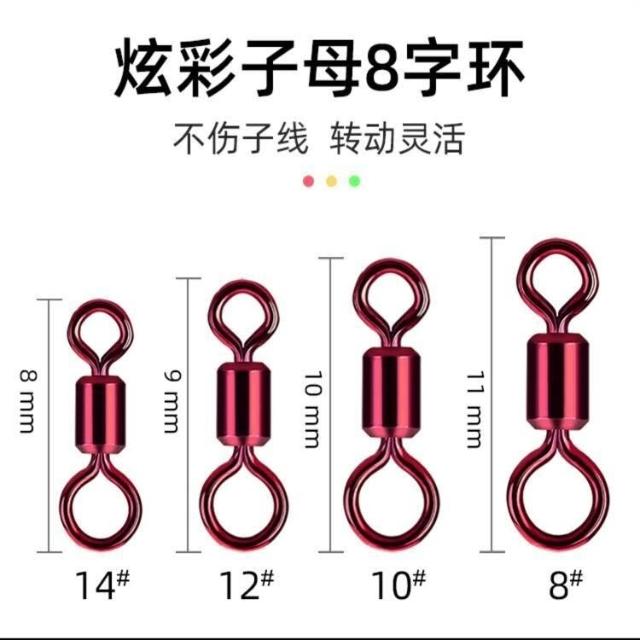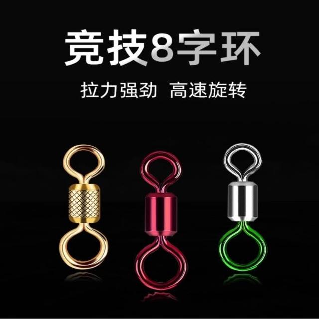 不空军渔具店 競技八字環 釣魚彩色子母8字環連接器金屬八子環強力金色壓花轉環垂釣小配件 導環