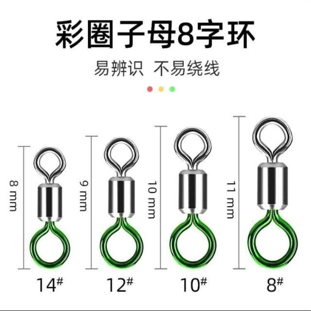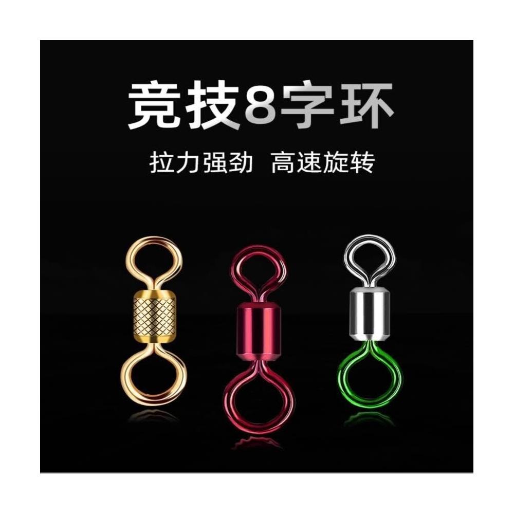 不空军渔具店 競技八字環 釣魚彩色子母8字環連接器金屬八子環強力金色壓花轉環垂釣小配件 導環