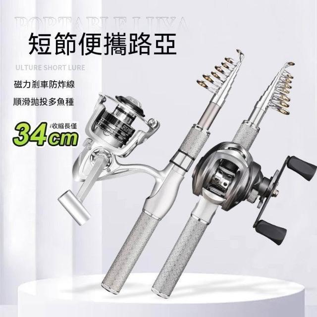 不空軍漁具迷你路亞竿超小便攜式路滑伸縮桿直柄紡車輪槍柄水滴輪套裝.../路亞竿/路亞/釣竿/路亞釣竿
