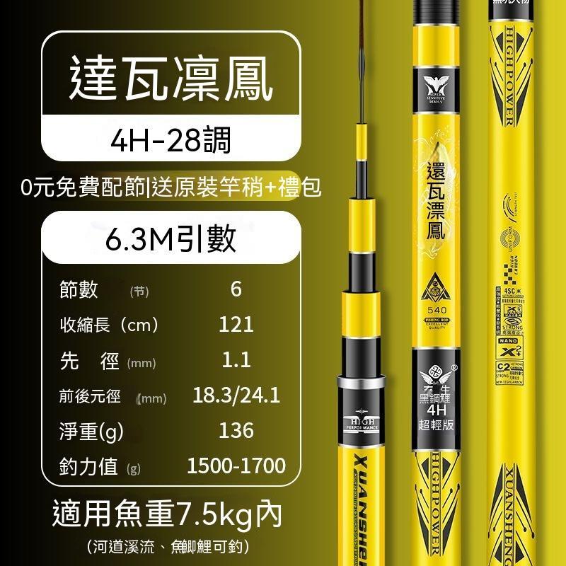 不空軍漁具魚竿碳素手竿超輕超硬28調臺釣竿6H19... 手竿 海竿