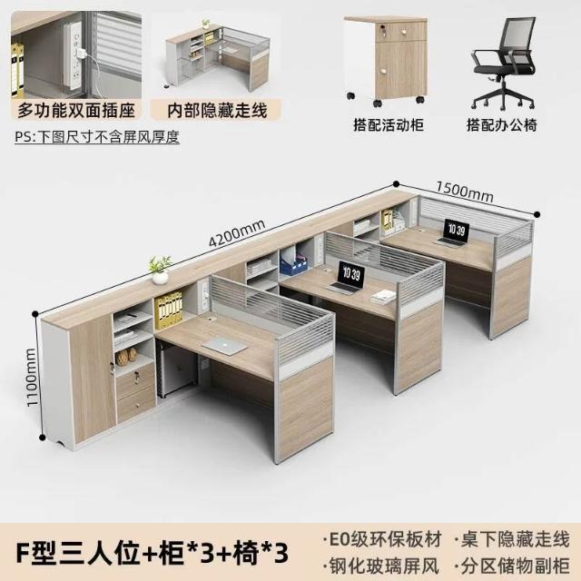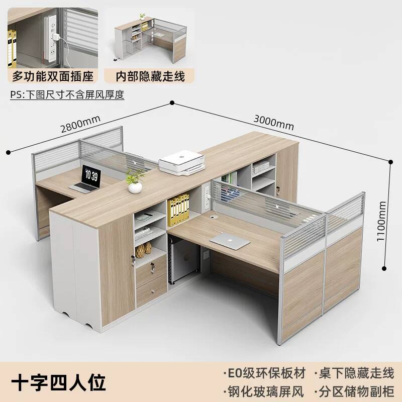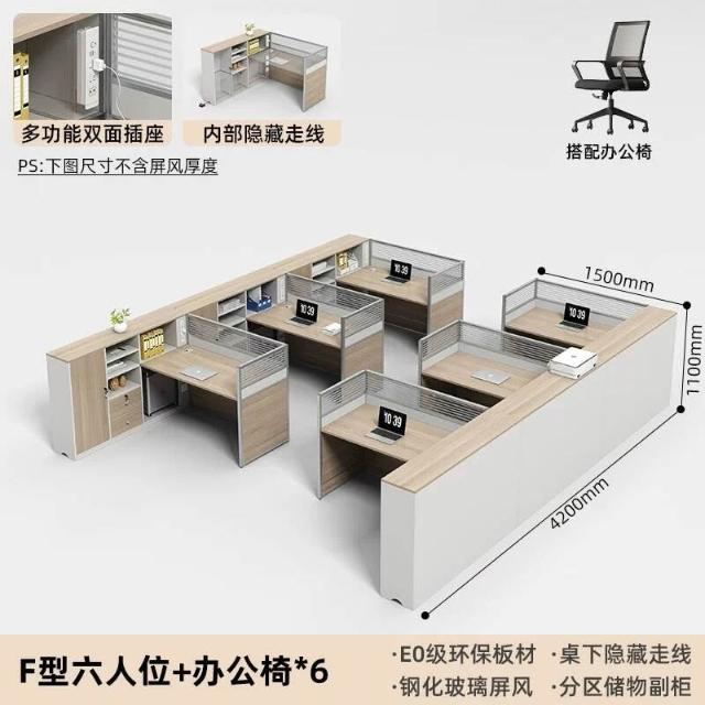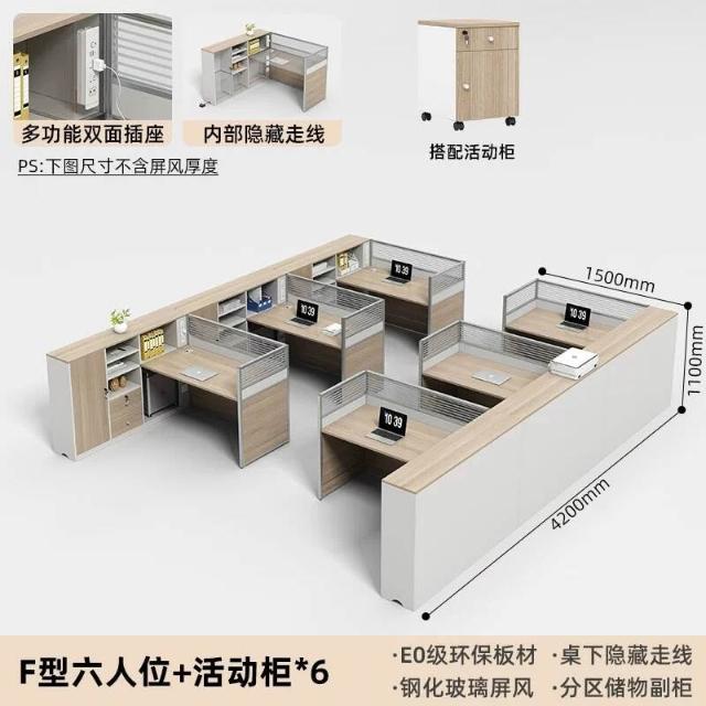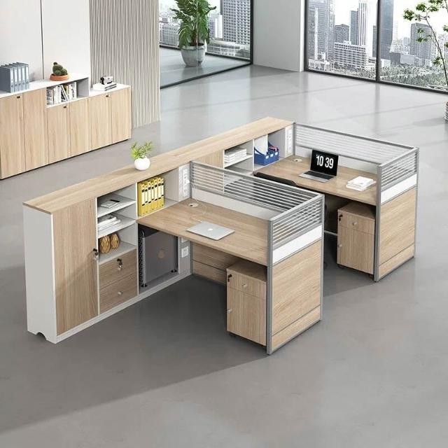 E0高櫃職員辦公桌卡座屏風工位4人位財務室桌椅組合6人L型工作位
