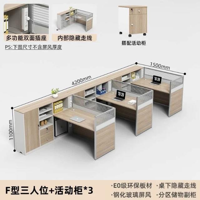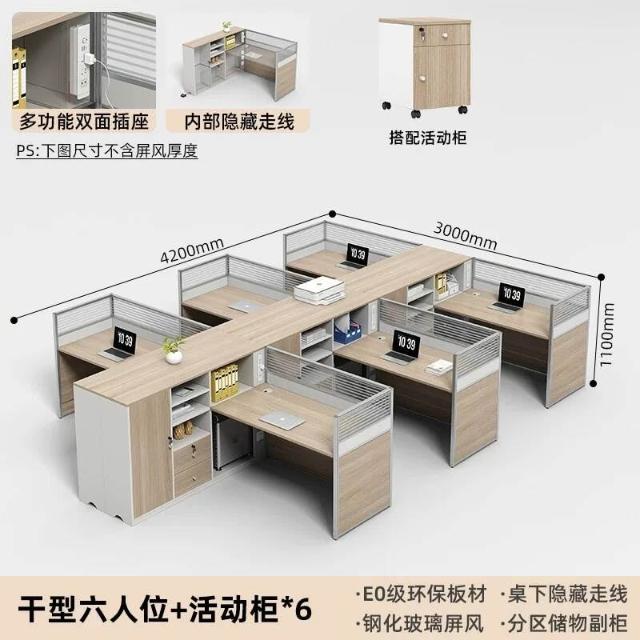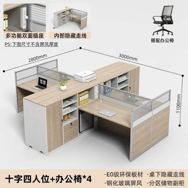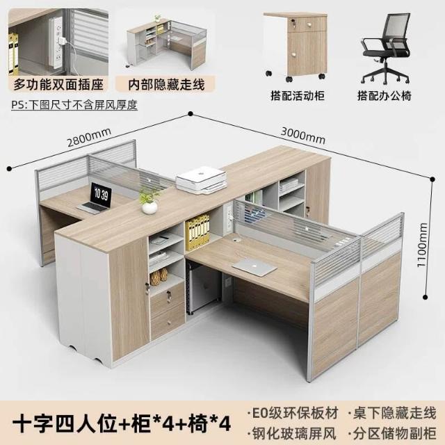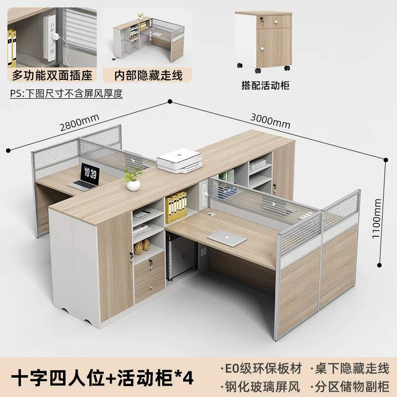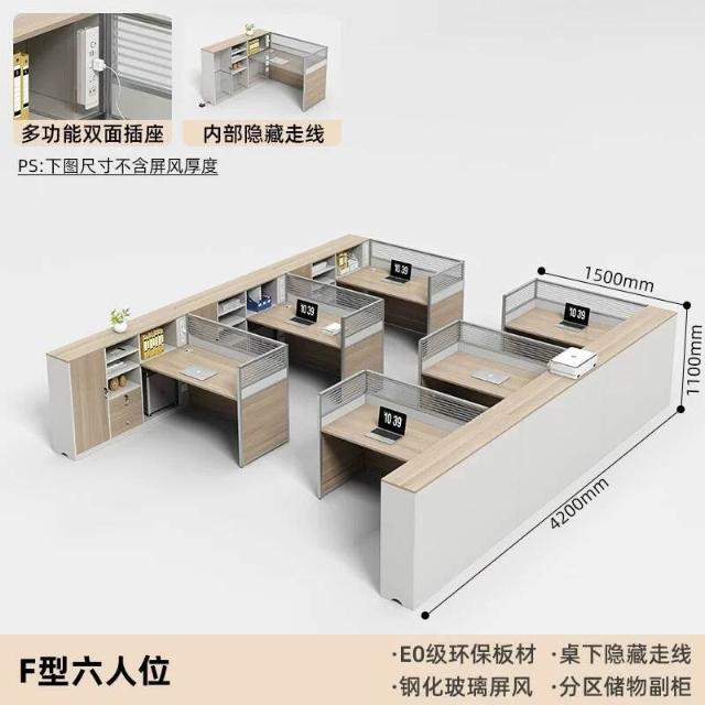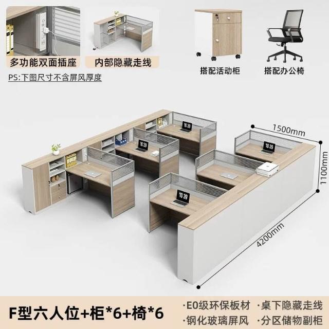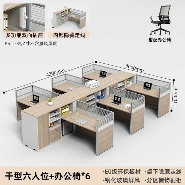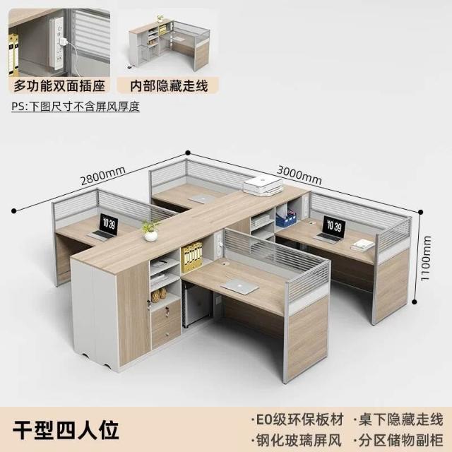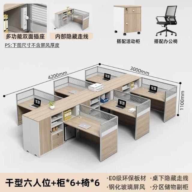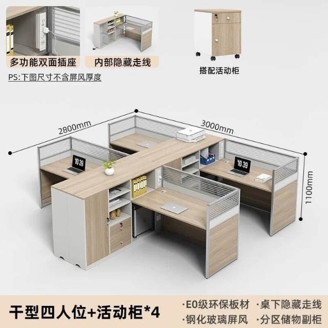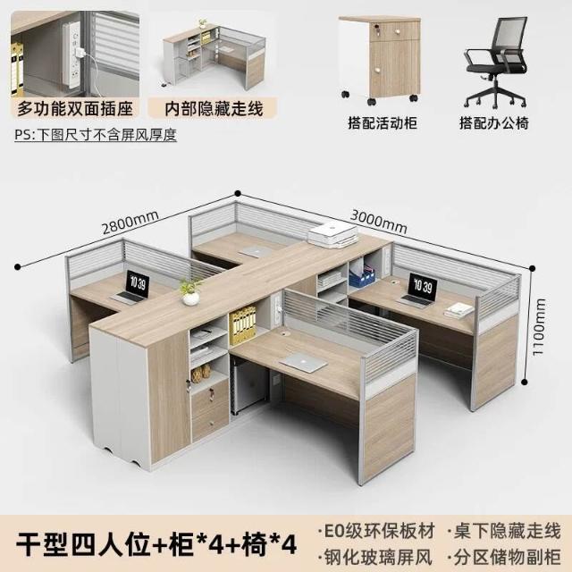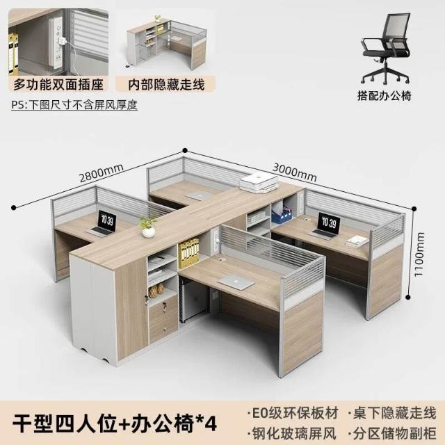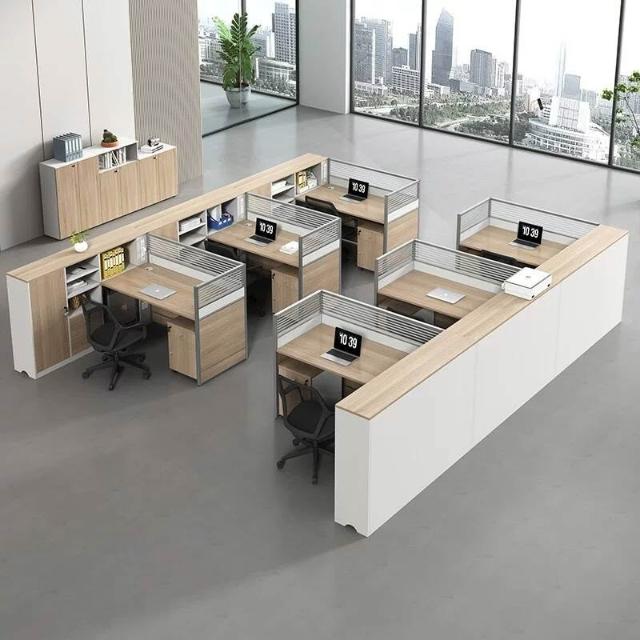 E0高櫃職員辦公桌卡座屏風工位4人位財務室桌椅組合6人L型工作位