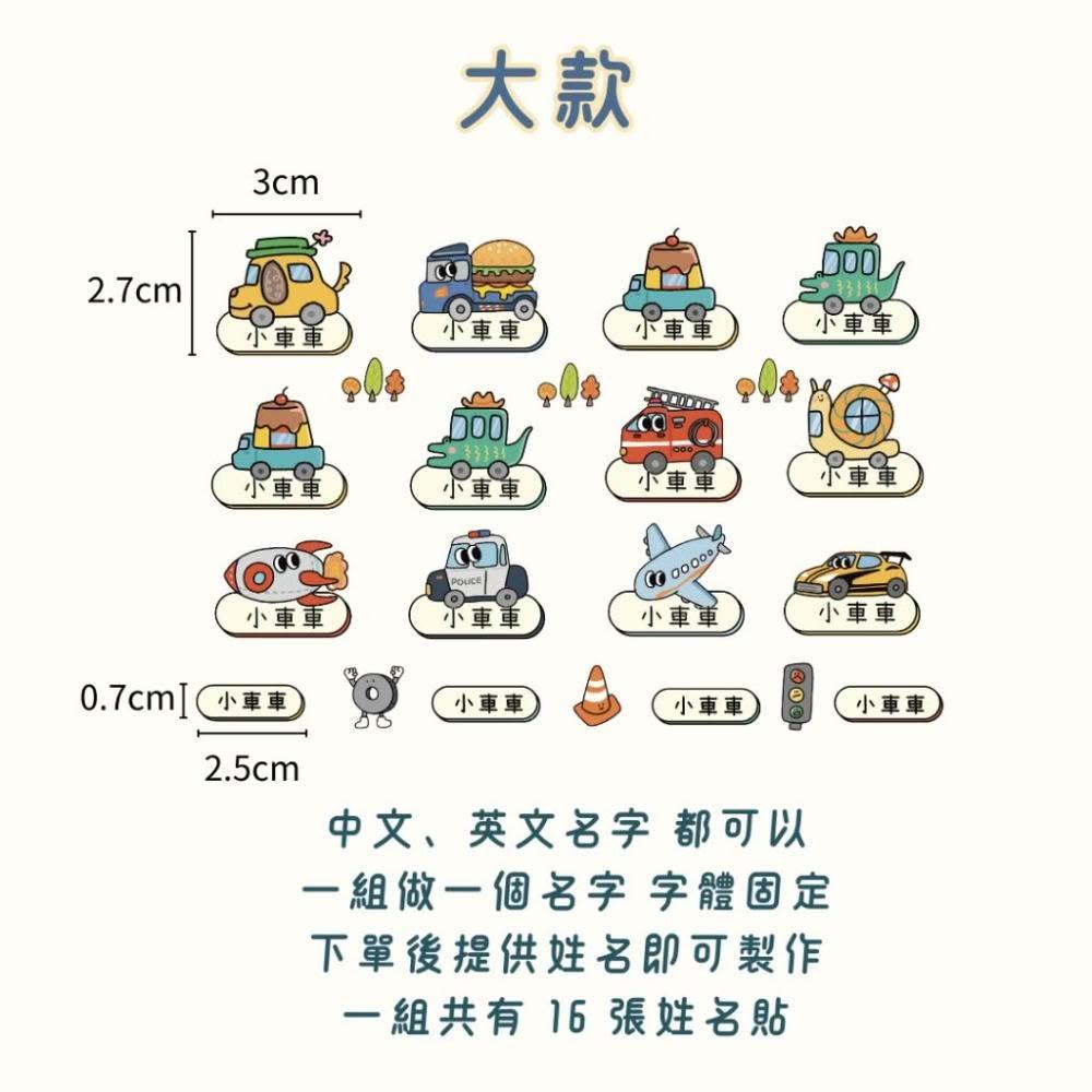 [快速出貨]客製化車子姓名貼 貼紙 姓名貼 防水姓名貼 水晶貼 寶寶姓名貼 男生姓名貼 男童姓名貼 卡通車姓名貼