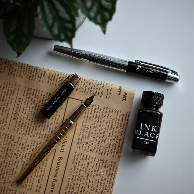 黑色鋼筆 可雷射刻字|金/銀兩色|附墨水|商務簽名/教師節/畢業送禮|一支起做/企業客製
