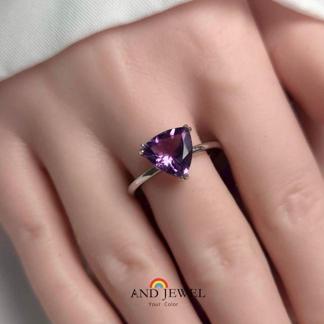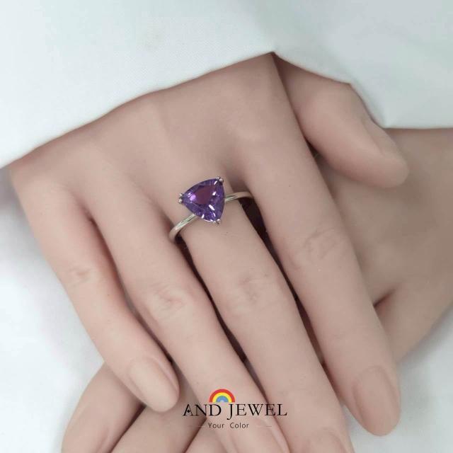 [安珠] 紫水晶 紫色 三角 9mm 戒指 經典系列 Triangle 寶石銀飾 AND JEWEL