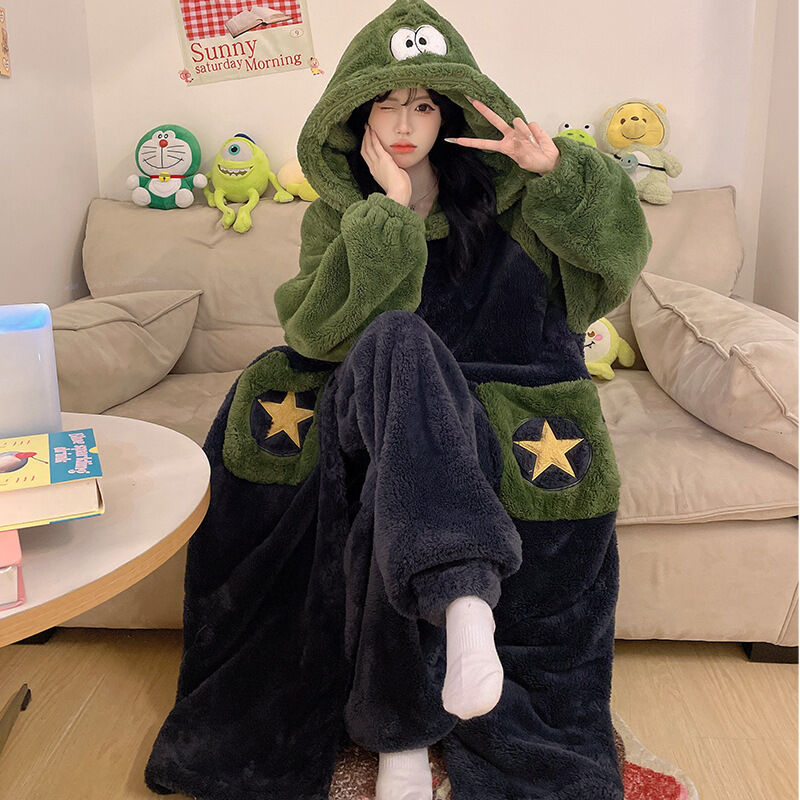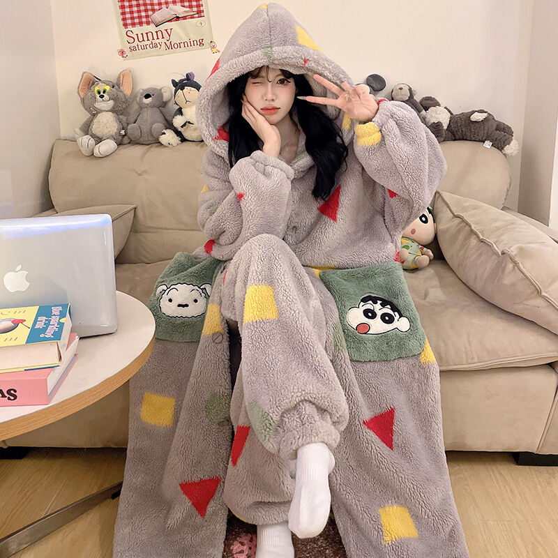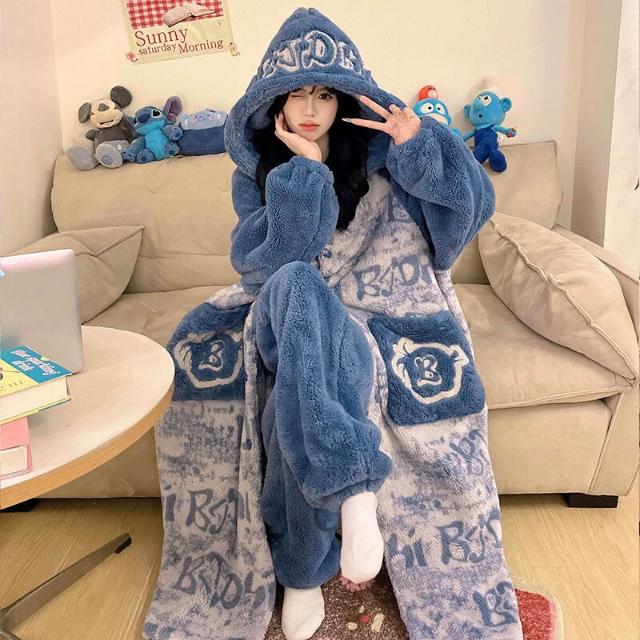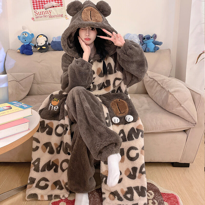 珊瑚絨睡袍女秋冬季2025年新款加絨加厚保暖睡衣法蘭絨冬天家居服