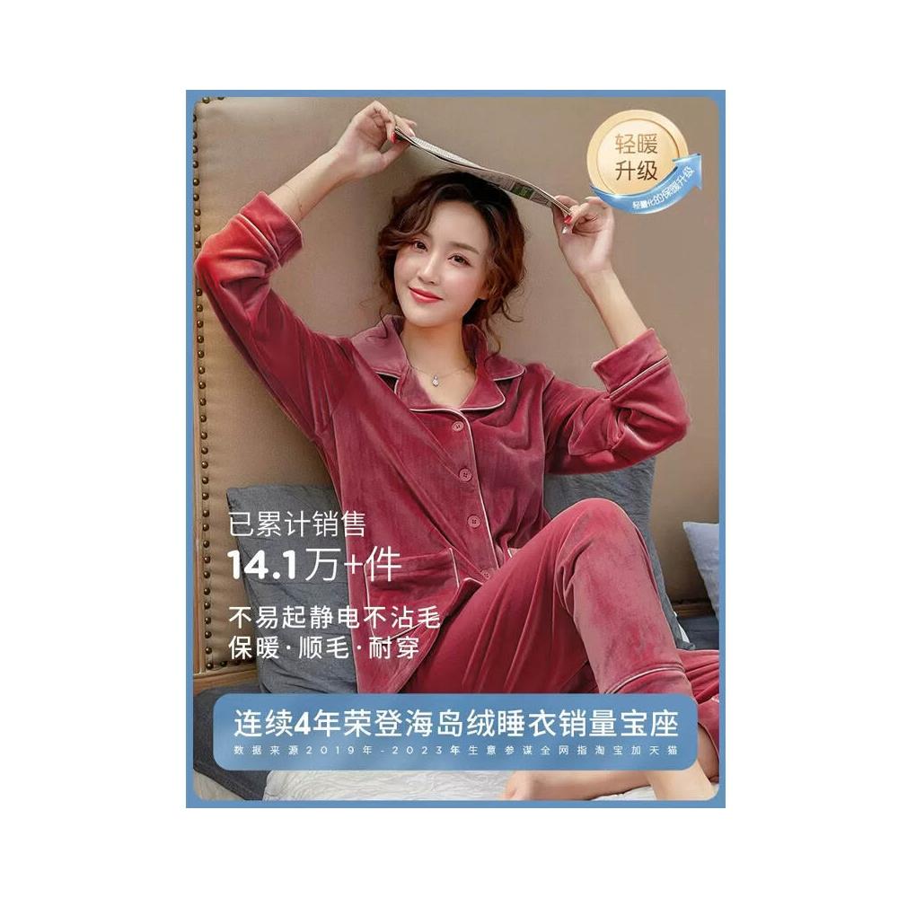 珊瑚絨睡衣女秋冬季加厚保暖長袖大碼海島絨套裝春秋法蘭絨家居服